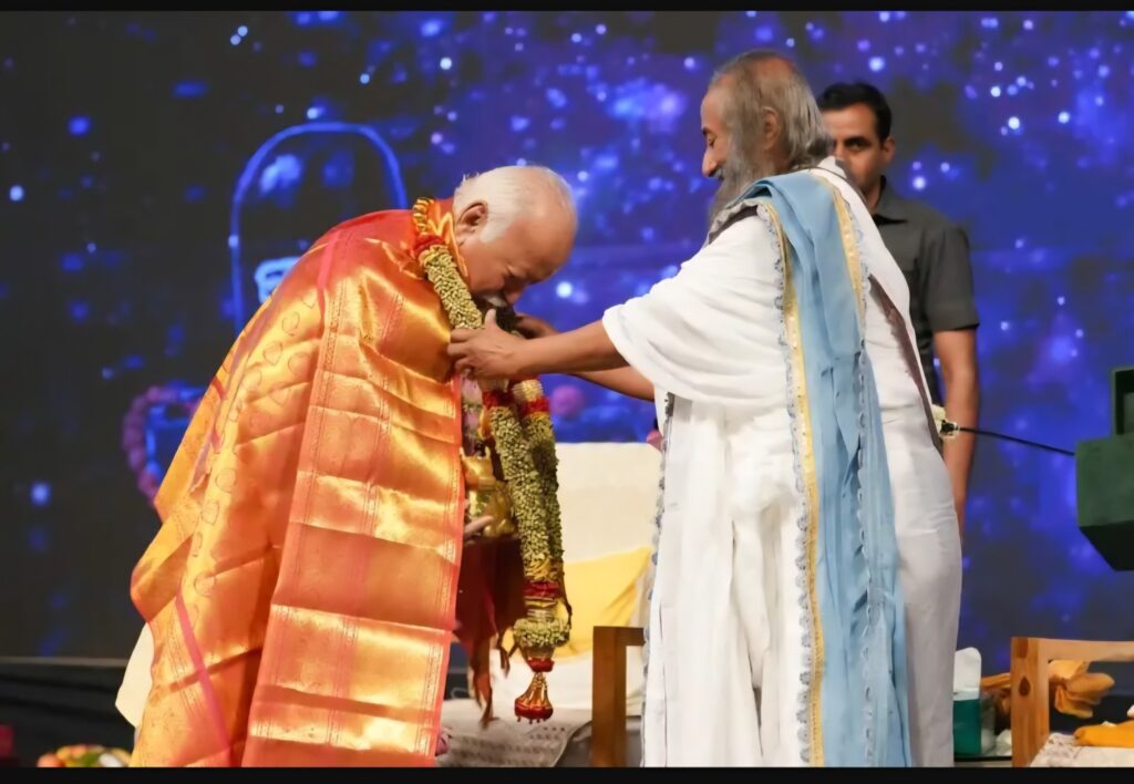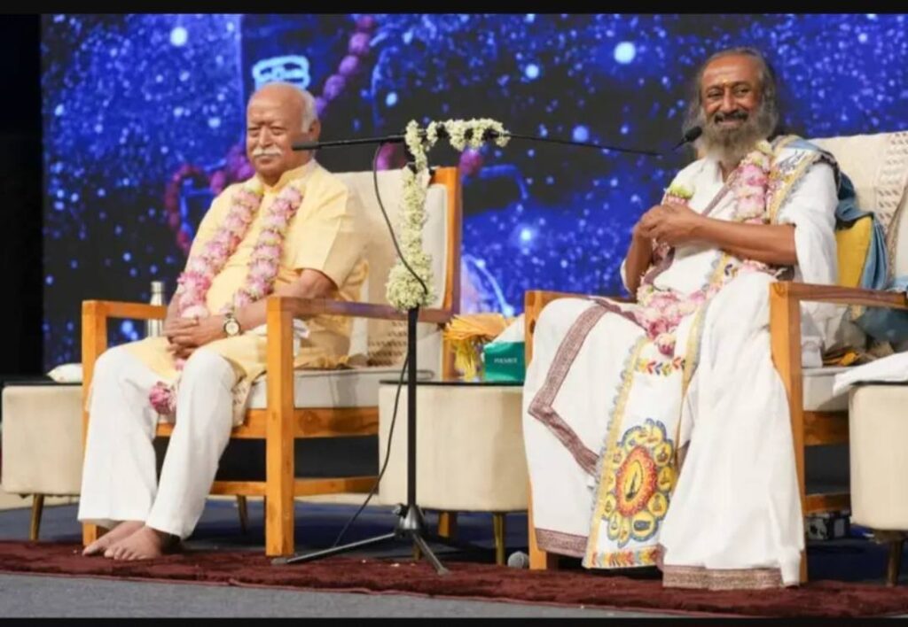 कार्यक्रम में सरसंघचालक डॉ. मोहन जी भागवत का सत्कार किया गया। धर्म की रक्षा भगवान नंदी करते हैं, ऐसा कहकर श्री श्री रविशंकर जी ने उन्हें पुष्पमाला पहनाकर, शाल और नंदीबैल की प्रतिकृति देकर अभिनंदन किया। श्री श्री रविशंकर जी ने कहा कि डॉ. मोहन भागवत जी कर्मनिष्ठ, समर्पित हैं। लगातार अपना समय देश के लिये, समाज के लिये देते हैं। आपके मार्गदर्शन से करोडों लोग देशभक्ति, धर्म की स्थापना में लगे हैं। संघ १०० साल से देश की धरोहर को बचाने का काम कर रहा है। वह यशस्वी भी हुआ है। संघ के लाखों लोग समाज के लिये समय दे रहे हैं। संघ का काम बढ़ते रहना चाहिए। युवा प्रेरित होकर देश और देवभक्ति में लगने चाहिएं।