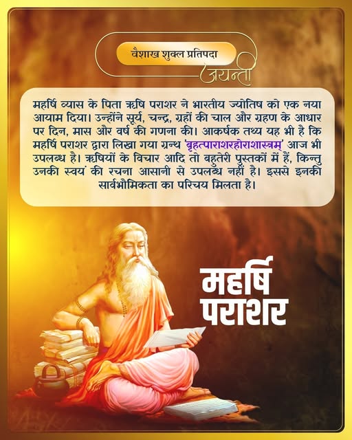 ​”पराशर ऋषि ने न केवल धर्म की स्थापना की, बल्कि उन्होंने समय, नक्षत्र और ग्रहों की गणना के माध्यम से मनुष्य के भाग्य और कर्म के बीच के संबंध को स्पष्ट किया।”